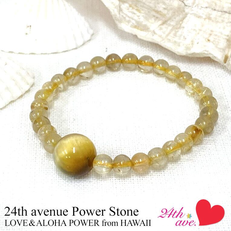 ハワイ パワーストーン 天然石 ルチル クォーツ タイガーアイ ブレスレット 27