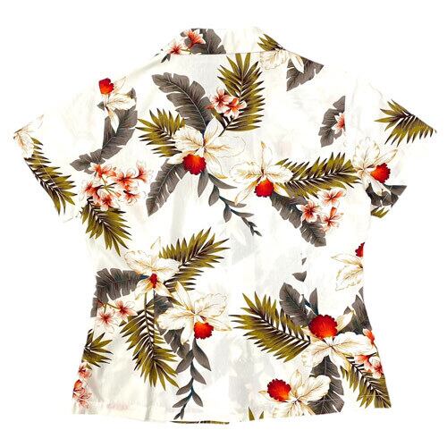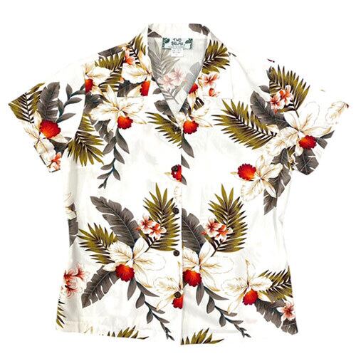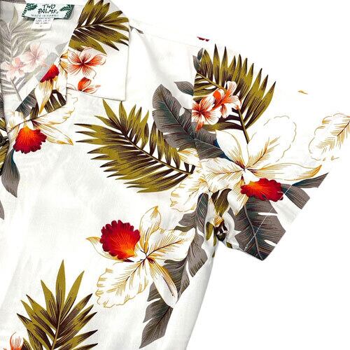 アロハシャツ レディース Two Palmsトゥーパームス ハワイアン オーキッド ホワイト おしゃれ 結婚式 半袖 リゾート 海 夏