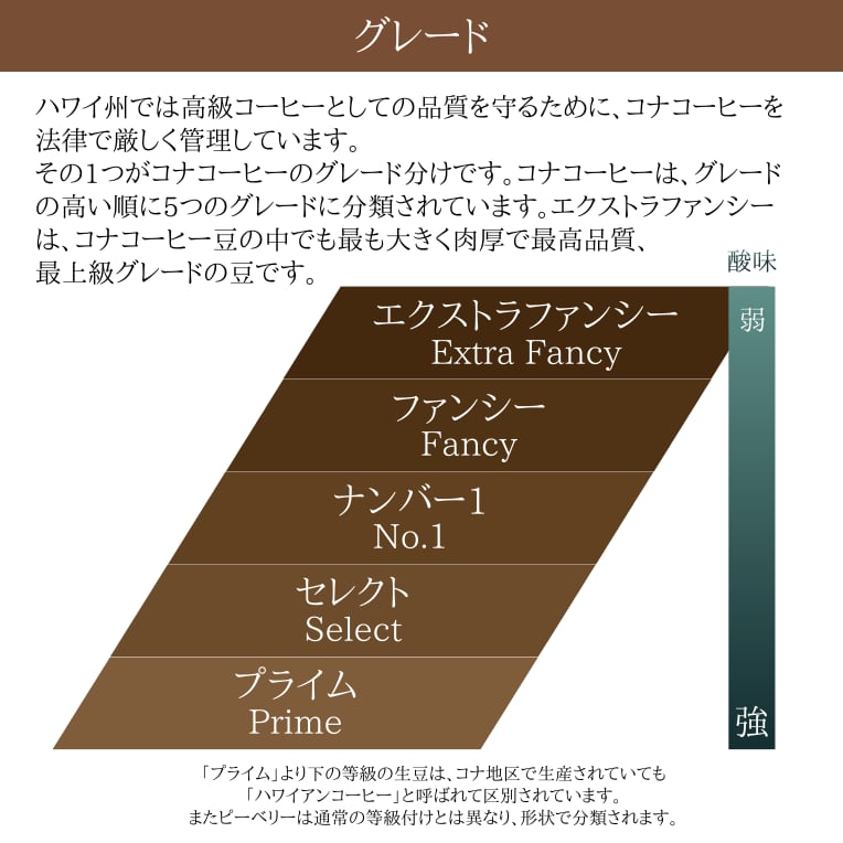 その中でもハワイ州の厳しい基準を満たした豆のみに名前を付けることが許されているコナコーヒー。そしてさらに等級分けされた最高級のエクストラファンシー。