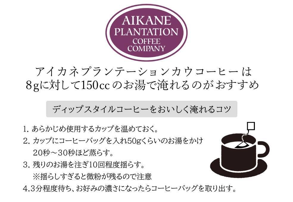 6個入 ディップスタイル コーヒーバッグ 浸漬式 アイカネ プランテーション 100% カウコーヒー ハワイアンコーヒー