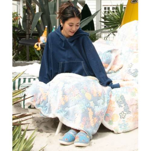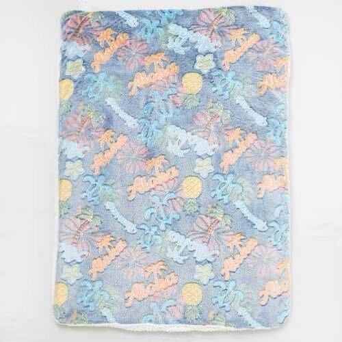 ポップなカラーリングでハワイのモチーフがぎゅっと詰まったブランケット。