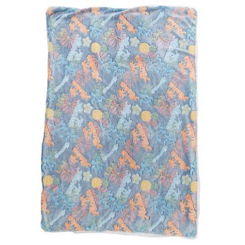 ポップなカラーリングでハワイのモチーフがぎゅっと詰まったブランケット。