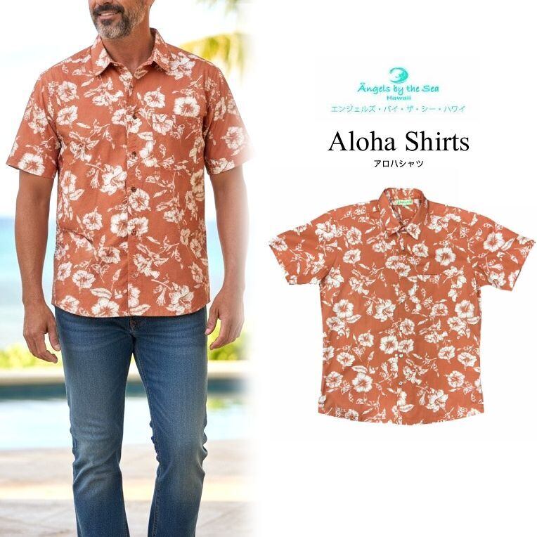 [関連キーワード] ハワイ 部屋着 アロハシャツ メンズ リゾート オレンジ エンジェルズバイザシー Angels by the sea hawaii カジュアル 海 夏 結婚式 海外 ゆったり おしゃれ 可愛い かわいい プレゼント ギフト