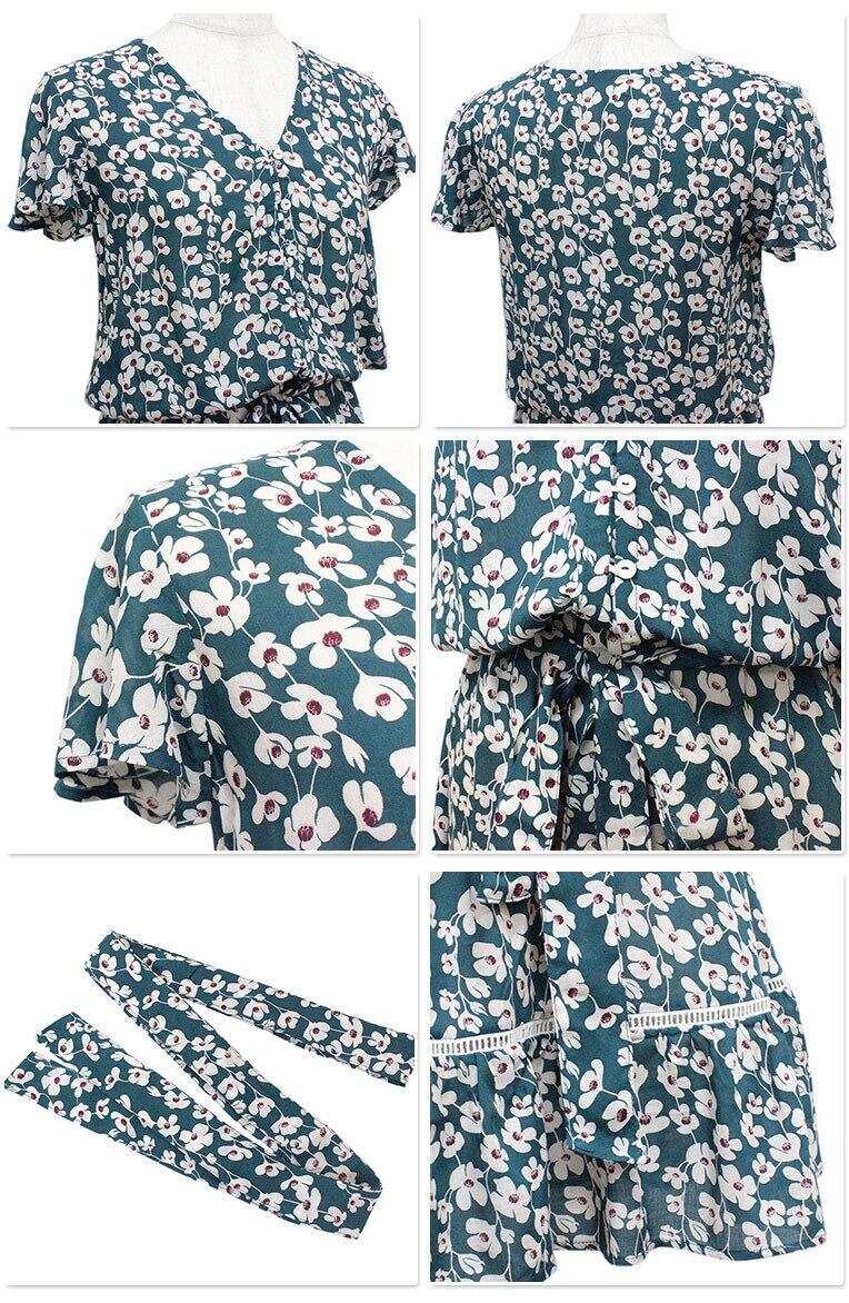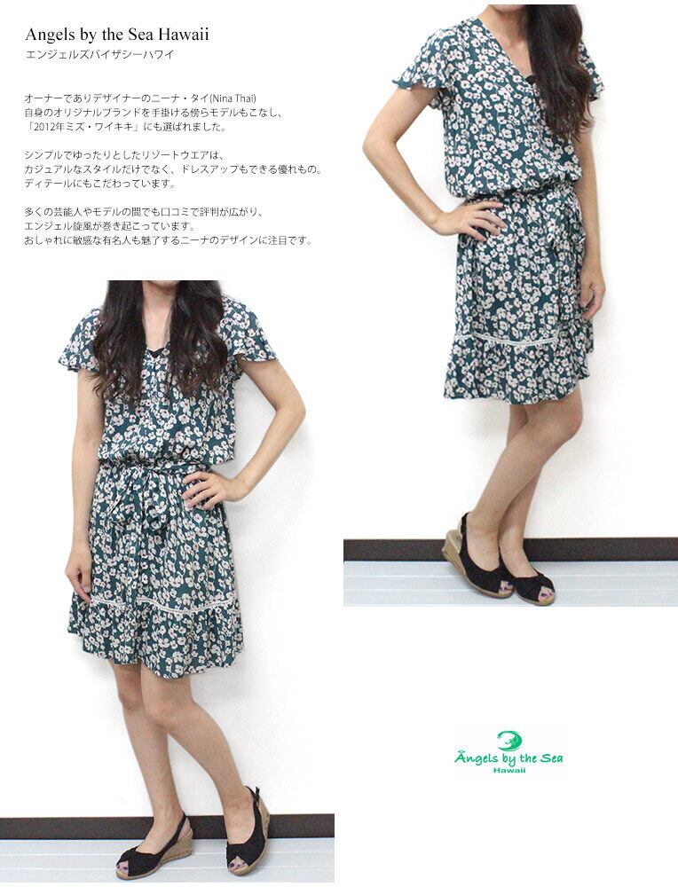Angels by the Sea Hawaii プアナニ フラワープリント ショートスリーブ ドレス グリーン
