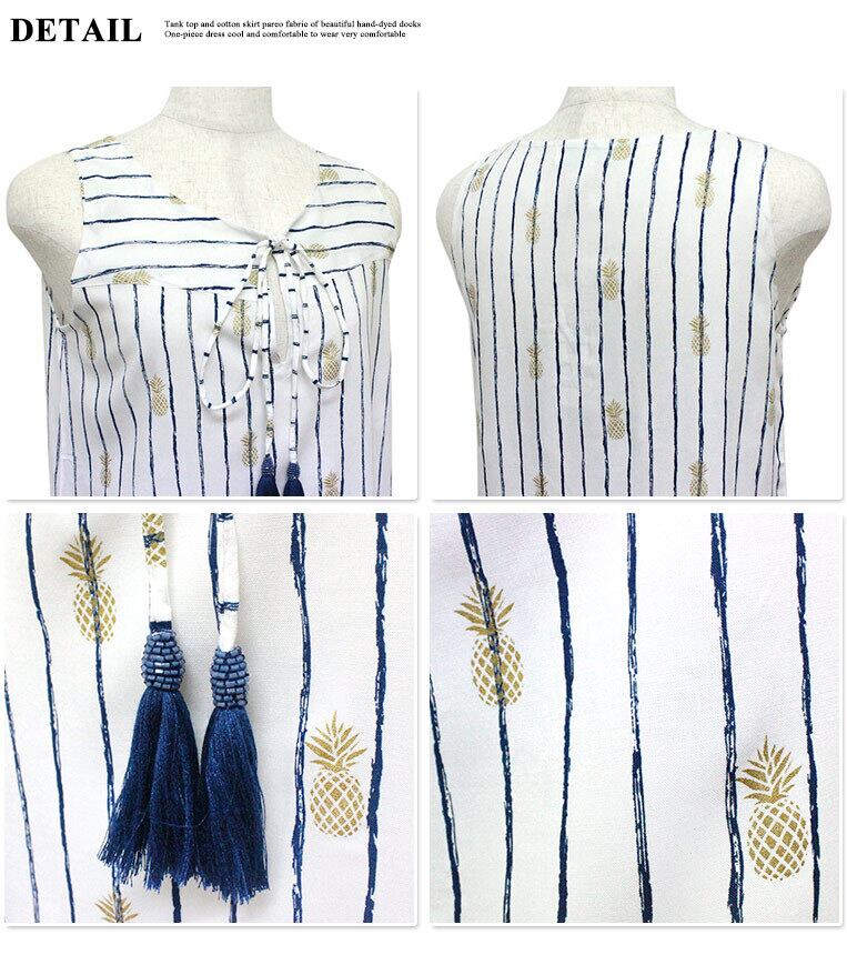 Angels by the Sea Hawaii パイナップル スリーブレス タッセル ホワイト/ネイビー