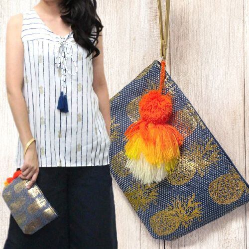 Angels by the Sea Hawaii エンジェルズバイザシーハワイ パイナップル スモールポーチ ネイビー