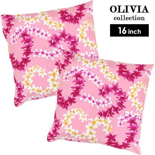 ハワイ クッションカバー オリビアコレクション プアマリア ピンク 16inch 55