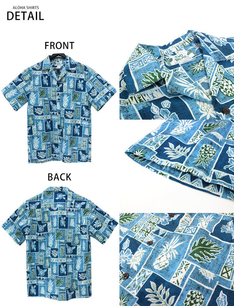 アロハシャツ メンズ Two Palms トゥーパームス パイナップル ブロック ブルー