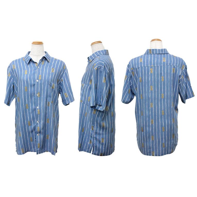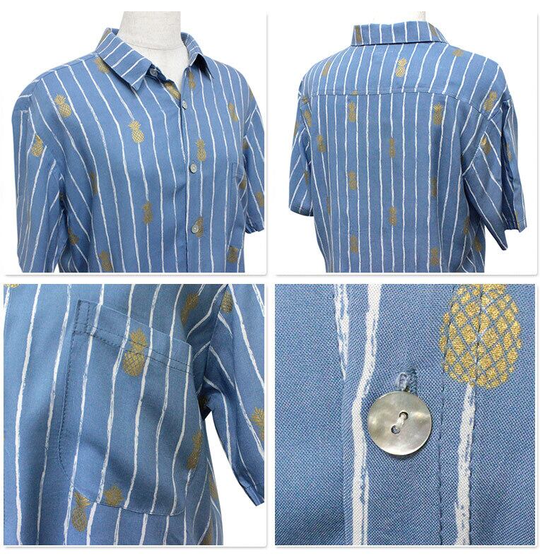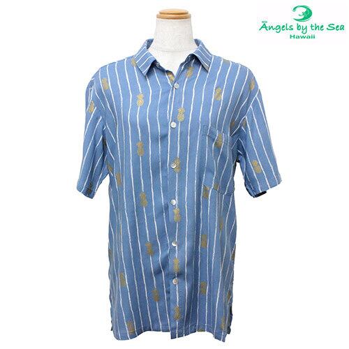 Angels by the Sea Hawaii メンズ アロハシャツ パイナップルプリントシャツ ブルー
