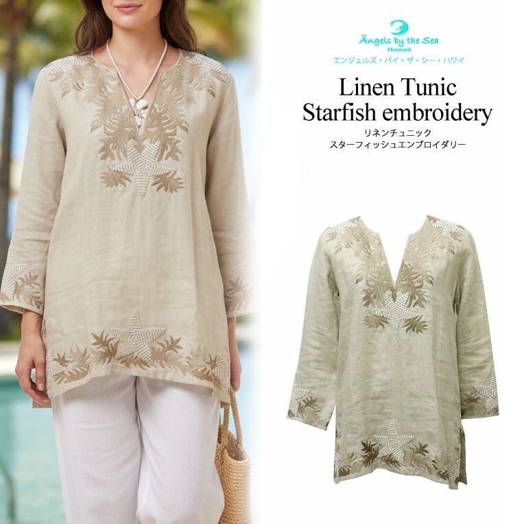 Angels by the Sea Hawaii リネンチュニック スターフィッシュエンブロイダリー ナチュラル XS [525NA] トップス