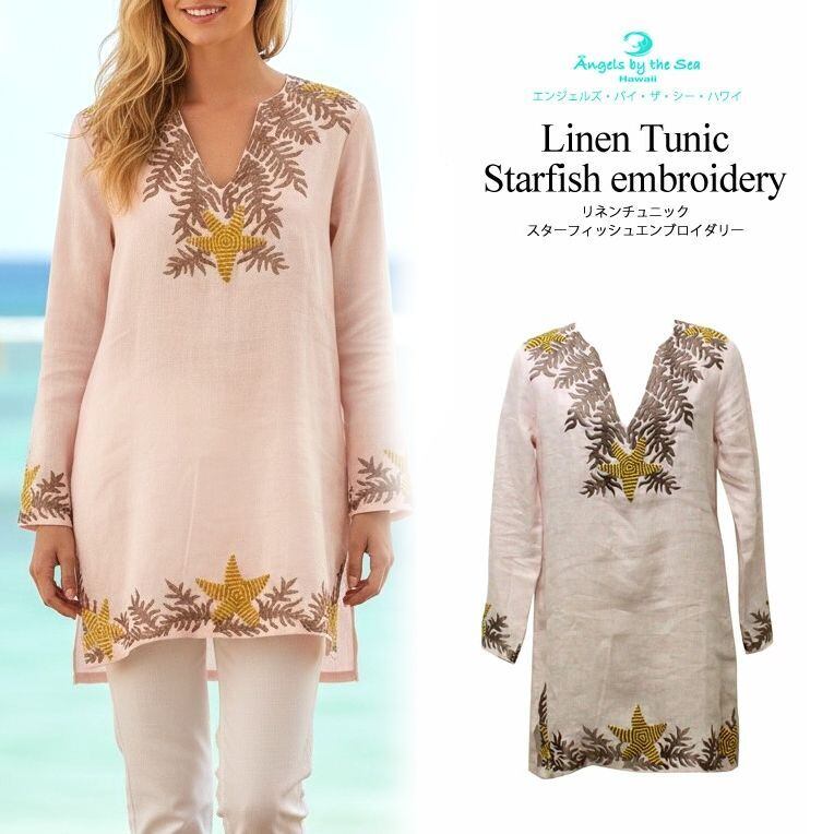 Angels by the Sea Hawaii リネンチュニック スターフィッシュエンブロイダリー ピンク XS [525P] トップス