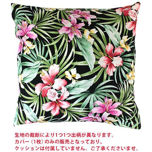 ハワイ クッションカバー オリビアコレクション ハイビスカス ジンジャー 黒 22inch 102