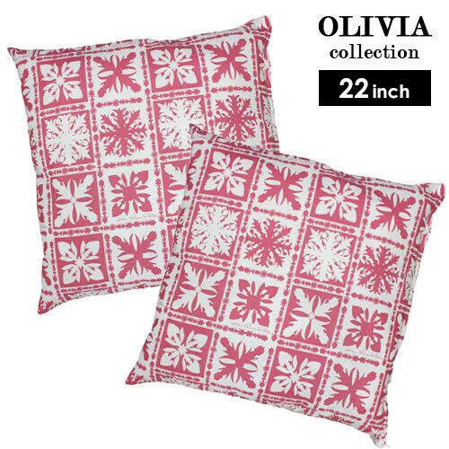 ハワイ クッションカバー オリビアコレクション ハワイアンキルト ピンク 22inch 23