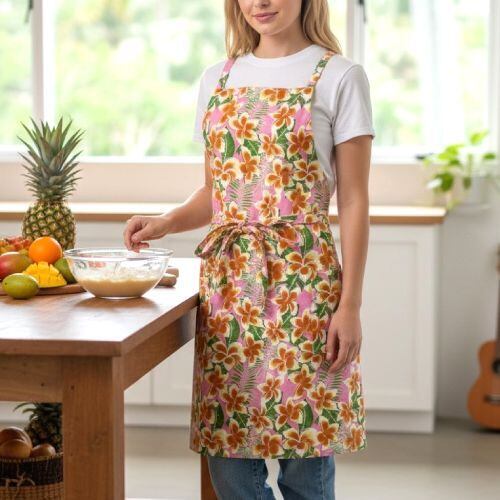 ハワイアンエプロン 花柄 PLUMERIA プルメリア Kahiko ハワイアン雑貨 かわいい