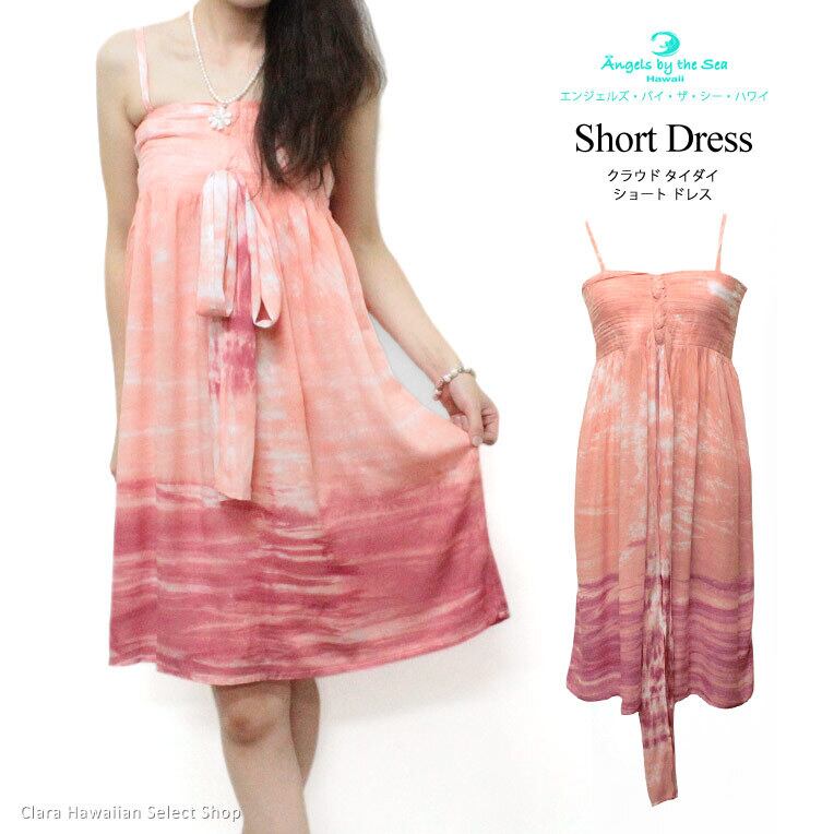 Angels by the Sea Hawaii クラウド タイダイ ショート ドレス マルチウェイ ストラップ ピンク