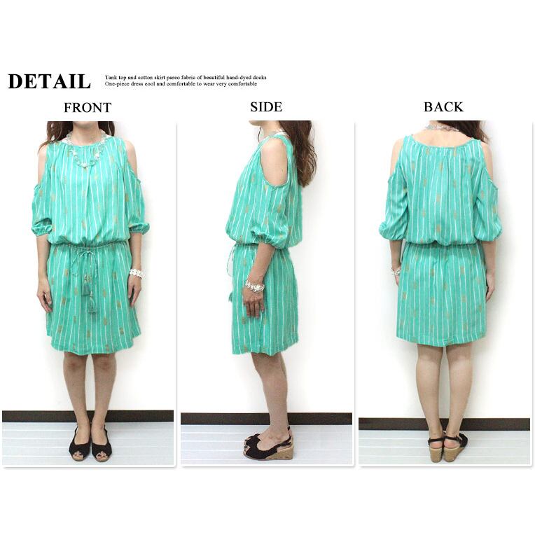 Angels by the Sea Hawaii プアドレス パイナップルプリント ショートドレス グリーン