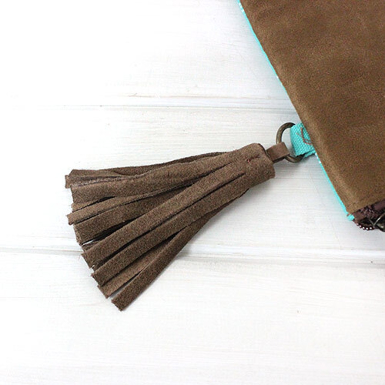 型崩れしにくい仕様になっているタッセル付クラッチバッグ。