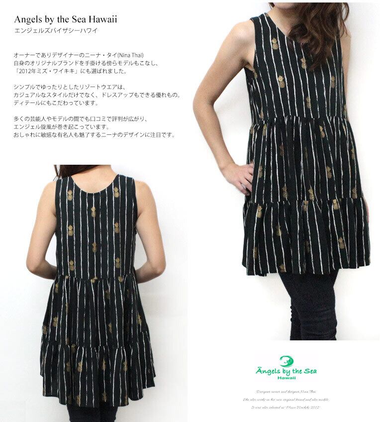 Angels by the Sea Hawaii アラドレス パイナップルプリント 2段ラッフルヘム ショートドレス ブラック