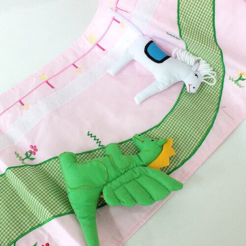 プリンセス・プリンス・白馬・ドラゴン・魔女の人形は面ファスナーで取り外し出来、他の場所に貼り替えて遊べます。