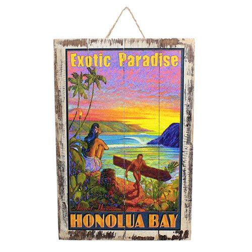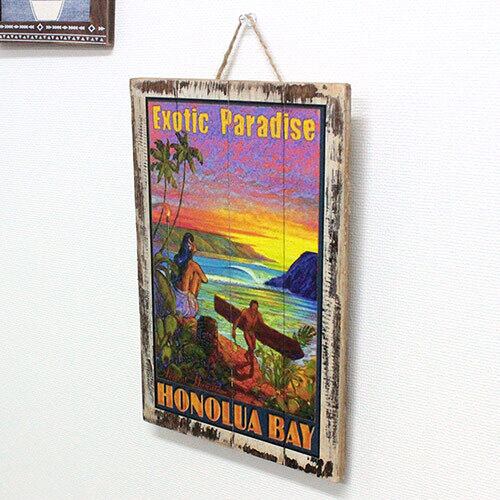 Kahiko ヴィンテージカンバン HONOLUA BAY ハワイアン雑貨 インテリア 壁掛け アートボード ネコポス便配送