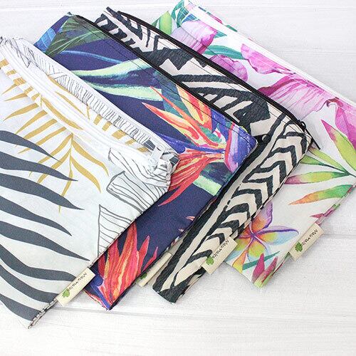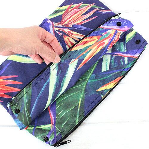 2日分の着替えを分けて入れたり、レッスンウェアを使用前・使用後で分けるなど、工夫していろいろな使い方ができる便利なアイテム。フラダンサーの心が躍るような、ハワイを代表する花々やタパ柄をデザインしました。
