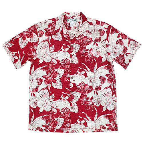 アロハシャツ メンズ Two Palms トゥーパームス モンステラ オーキッド レッド 赤 ハワイ