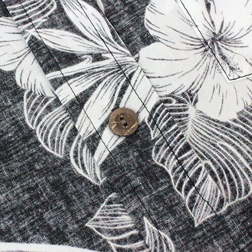 シャツのデザインとポケットのデザインがマッチしており、細部までこだわった上に、リーズナブルなMade in HAWAIIアロハシャツ。ボタンはココナッツボタンを使用。
