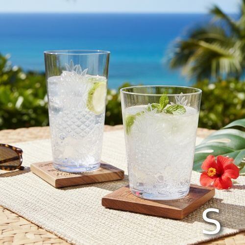 パイナップルが凹凸で描かれたHAWAIIの雰囲気たっぷりなアクリルグラス。