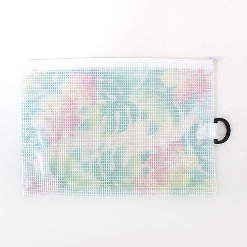 しっかりとした生地で、中身も見える便利なクリアメッシュポーチ。
