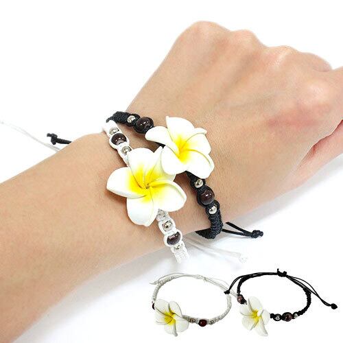 プルメリア ミサンガ ブレスレット アクセサリー ハワイアンアクセ 白 黒 ホワイト ブラック ハワイアン 雑貨 ハワイ雑貨
