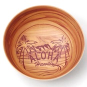 ダイヤモンドヘッド、パームツリーと美しい波がウッドに描かれたナチュラルテイストのウッドボウル。厚みがあり丈夫なバンブー素材を使用。サイミン〔ハワイアンラーメン)にも最適。