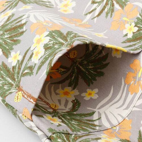 パームツリーやハイビスカスなどのハワイの情景を連想させる上品な柄のトートバッグ。