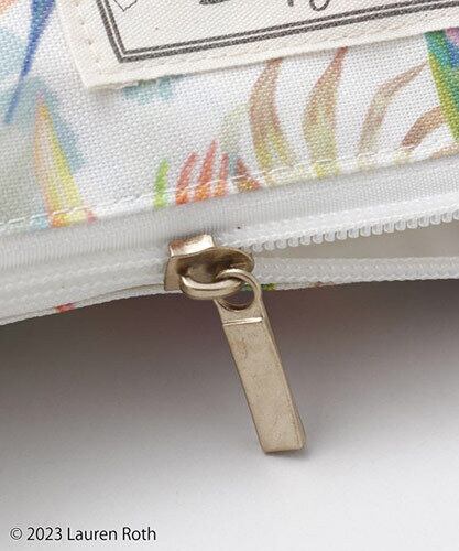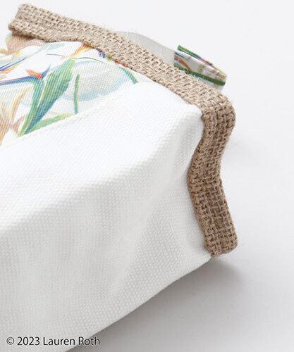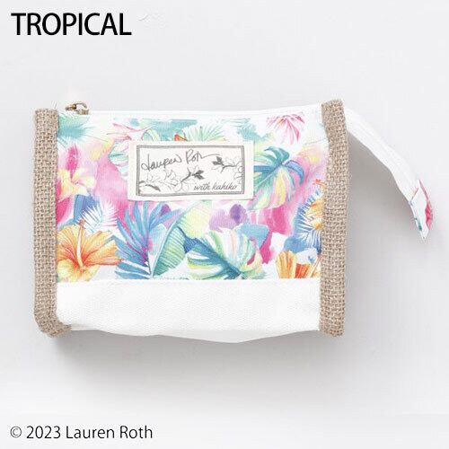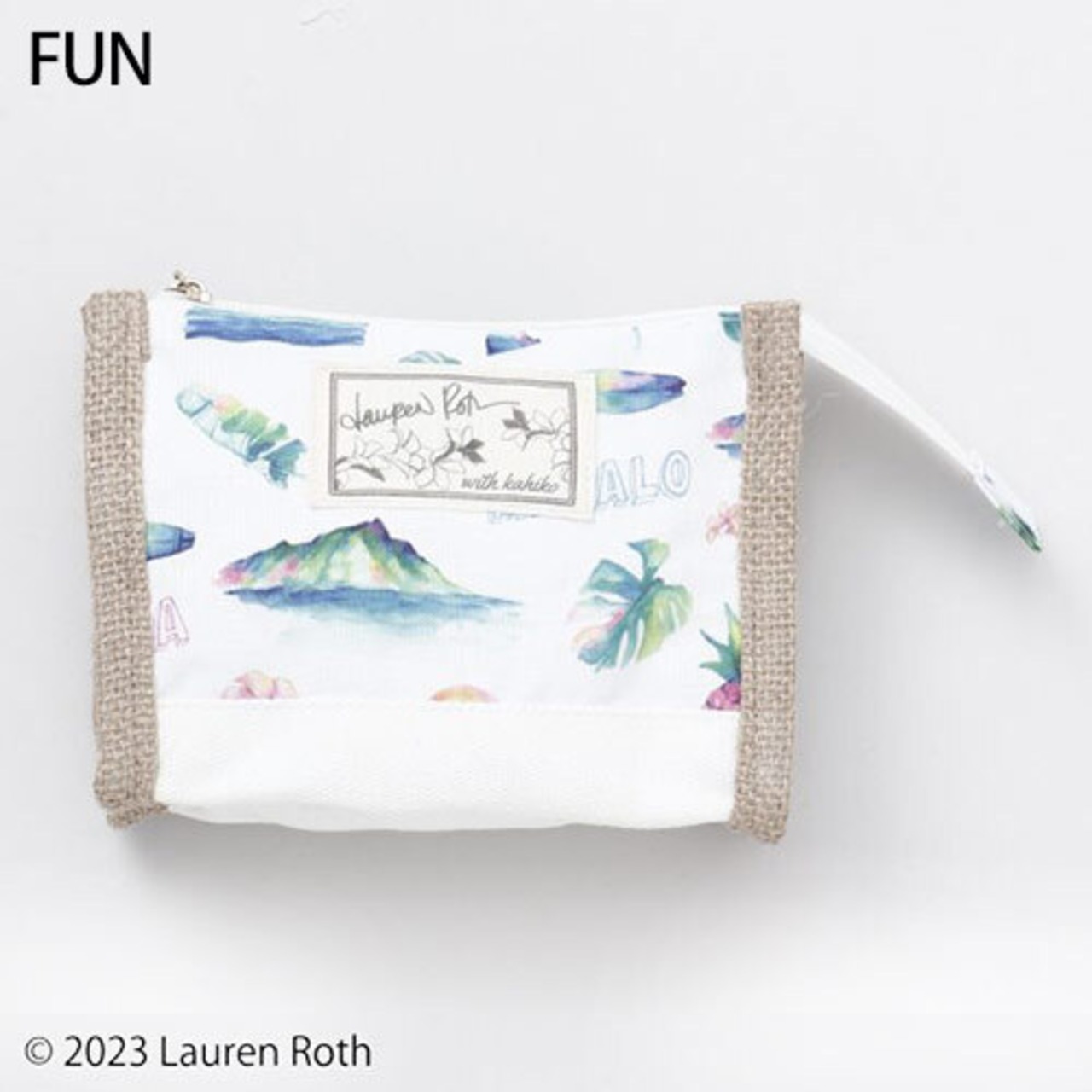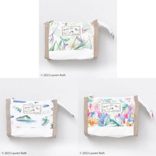 ハワイ在住のアーティスト&デザイナー「Lauren Roth(ローレン・ロス)」のアートをプリントしたポーチ。麻素材のパイピングがポイント。