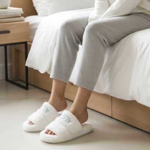 ALOHAの刺しゅうが可愛いモコモコファーのスリッパ。