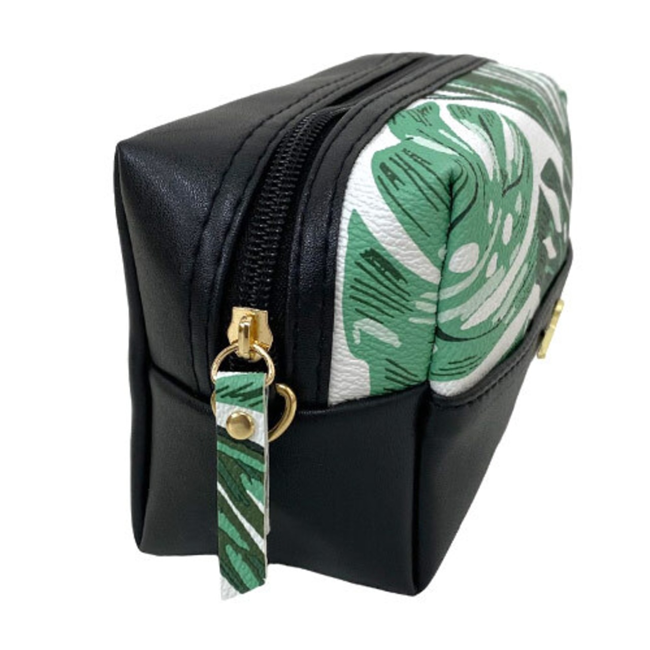 「繁栄」や「金運」の意味を持つモンステラが描かれたボックスポーチ。