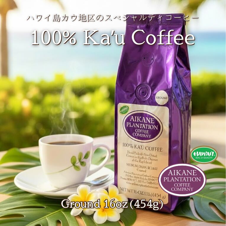 アイカネ プランテーション 100% カウコーヒー 焙煎挽豆 16oz(454g) ハワイアンコーヒー